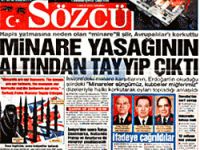 SÖZCÜ minareye kılıf bulduİktidara sert muhalefetiyle bilinen Sözcü gazetesi, İsviçre'deki minare skandalını bile Tayyip Erdoğan'a maletti.02 Aralık 2009 Çarşamba 09:18