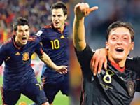 Dünya son finalistini arıyor2010 Dünya Kupası'nda son finalist bugün yapılacak Almanya-İspanya maçıyla belli olacak. Saat 21.30'da başlayacak ve TRT 1'den naklen yayınlanacak.07 Temmuz 2010 Çarşamba 08:07