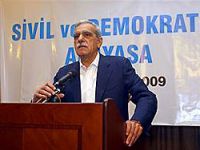 Ahmet Türk'ten DTP'lilere çağrı DTP'li Türk, “Türkiye kamuoyunda oluşan tepkileri önemsemezsek, sürecin önünü tıkarız” dedi, ancak umutlu konuştu: “Omuzlarımızdaki yük ağır ama başarabiliriz.”22 Ekim 2009 Perşembe 08:06
