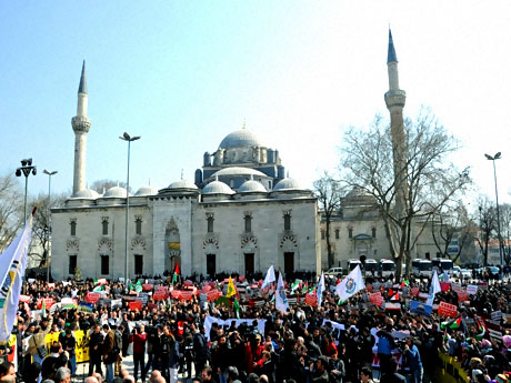 Onbinler İstanbul'da İsrail'i protesto etti!