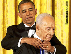 ABD Başkanı Barack Obama, ülkesinde verilen en yüksek sivil nişan olan Özgürlük Madalyası'na bu yıl layık gördüğü 13 kişiden biri olan İsrail Cumhurbaşkanı Şimon Peres'e madalyasını, Beyaz Saray'da düzenlenen törende verdi.