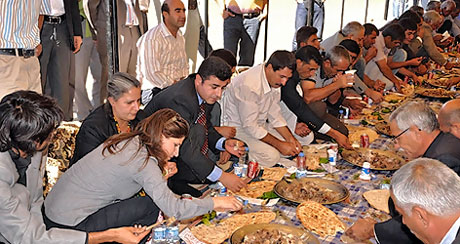 Türk ve Metinan aşiretlerinin barışması münasebetiye Demokratik Toplum Kongresi (DTK) Başkanı Ahmet Türk'ün verdiği yemeğe, Barış ve Demokrasi Partisi (BDP) Genel Başkanı Selahattin Demirtaş'ın da aralarında bulunduğu yaklaşık 15 bin kişi katıldı.