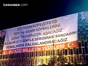 Asılan pankartta, "Şeytanın köpeği Feto seni ve senin köpeklerini kendi tasmanızda asacağız Allah'ın (C.C.) izniyle demokrasi sancağını semalarda dalgalandıracağız" ifadeleri yer aldı. Bu ifadelerin yer aldığı pankartın altına ise, "Bu aziz milletin yiğitleri" imzası atıldı.