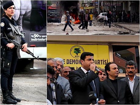 Demirtaş, Ayna ve Baydemir, Altıok Mahallesi'nde BDP ilçe Başkanlığına geçerken, parti binası çevresinde toplanan bir grup ile güvenlik güçlerine arasında gerginlik yaşandı.