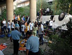 Antalya'nın Aksu ilçesinde sürücüsünün uyuduğu tahmin edilen tur otobüsünün dereye uçması sonucu meydana gelen kazada, ilk belirlemelere göre 16 kişi öldü, 25 kişi de yaralandı.