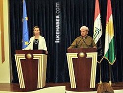 Bir dizi temaslarda bulunmak üzere dün akşam başkent Hewler'e gelen Avrupa Birliği (AB) Dışişleri Yüksek Temsilcisi Federica Mogherini, bugün Federal Kürdistan Başkanı Mesud Barzani tarafından kabul edildi. Barzani ve Mogherini, görüşmenin ardından ortak basın toplantısı düzenledi.