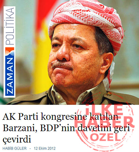 İddiaya göre Kürdistan Yönetimi lideri Mesut Barzani, BDP’nin kongre davetini geri çevirdi. Barzani’nin, BDP kongresine alt düzeyde bir heyet göndereceği iddia edildi.
