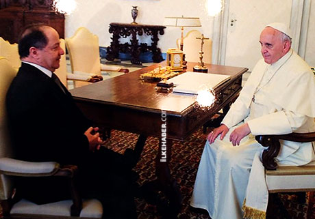 Federal Kürdistan Başkanı Mesud Barzani, Avrupa ziyareti çerçevesinde İtalya Dışişleri Bakanı ile görüşmesinin ardından Vatikan’da Hristiyan Katoliklerin ruhani lideri Papa Francesco’yu ziyaret etti.