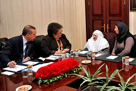 Başbakan Erdoğan'ın Cumartesi annelerini kabulü sırasında AK Parti Grup Başkanvekili Ayşenur Bahçekapılı ve TBMM Kadın Erkek Fırsat Eşitliği Komisyonu Başkanı Güldal Akşit de hazır bulundu.