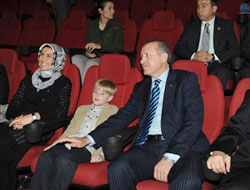 Başbakan Erdoğan filme kızı Sümeyye Erdoğan ve Zülfi Livaneli ile birlikte geldi.