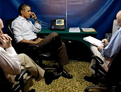 Obama'nın bu çadırdan Dışişleri Bakanı Hillary Clinton, Ulusal Güvenlik Danışmanı Tom Donilon ve Savunma Bakanı Robert Gates'le telefon görüşmeleri yaptığı bildirildi.