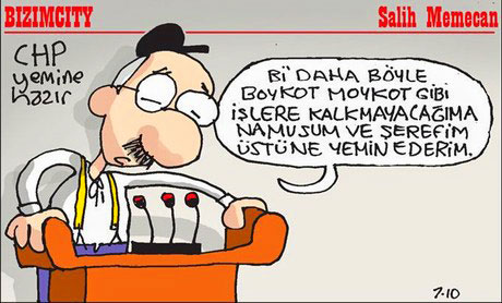 Başkent'te süren çalışmalar CHP’nin yemin etmesiyle ilgili beklentileri artırdı. Sabah çizeri Salih Memecan da bugün CHP'nin yemin törenini çizdi. Kılıçdaroğlu'na yemin ettiren Memecan CHP'lileri kızdıracak..