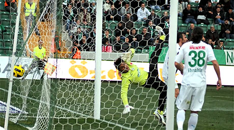 54. dakikada Bursaspor atağında ceza yayı üzerine gelen topu Ömer kafayla penaltı noktasına doğru indirdi. Miller'in dokunamadığı top auta çıktı.