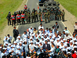 “Operasyon değil diyalog” yazılı önlükler giyen “canlı kalkanları” çok sayıda gazeteci de takip etti. “Canlı kalkanlar” Lice çıkışında asker tarafından durduruldu. Askerî yetkililer milletvekilleri dışındaki “canlı kalkanların”, “can güvenliklerinin sağlanamayacağı” gerekçesiyle bölgeye geçişine izin vermedi. Valiliğin yazılı kararını BDP’lilere ileten Albay Eyüp Şeker, Milletvekillerine, “Dokunulmazlığınız olduğu için size karışamayız. Ama diğer partilileri bırakmayacağız” dedi.