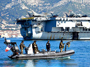 Uçak gemisinde 18 Rafale savaş uçağı, 8 Super Etendard tek kişilik taarruz uçağı ve 2 erken uğarı uçağının yanı sıra askerlerden ve pilotlardan oluşan 2 bine yakın personel bulunuyor.
