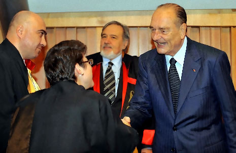 Fransa eski Cumhurbaşkanı Jacques Chirac'a, Galatasaray Üniversitesi tarafından "fahri doktora" unvanı verildi. Chirac, Türkiye- Fransa siyasi diyalogunun son yıllarda hatırı sayılır biçimde yoğunlaştığını ifade ederek, "Hiç kuşkusuz Türkiye'nin bölgesel ve uluslararası arenadaki atılımlarıyla daha da güçlenecek" dedi.