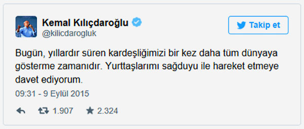 Sonrasında Misak-ı Milli kulesine geçen Kılıçdaroğlu, Anıtkabir özel defterini imzaladı. Birliktelik vurgusu yaptı. İsmet İnönü'nün kabrini de ziyaret eden CHP lideri, Twitter hesabından da sağduyu çağrısı yaptı. "Bugün, yıllardır süren kardeşliğimizi bir kez daha tüm dünyaya gösterme zamanıdır. Yurttaşlarımı sağduyu ile hareket etmeye davet ediyorum." dedi.