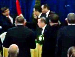 Başbakan Recep Tayyip Erdoğan tam arkasında yaşanan olayları şaşkın gözlerle izledi..
