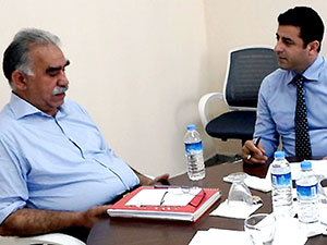 Çözüm sürecinde yapılan çalışmaların yargı bağışıklığına kavuşması için MİT Müsteşarını da içeren yasal düzenleme yapıldığını hatırlatan Demirtaş, şöyle devam etti: “İmralı’ya gittik. Kandil’de toplantılara gittik. Bunlar hükümet onayıyla yapıldı. Orada çekilen fotoğraflar hatıra fotoğrafı değildi. İkna mesajlı fotoğraflardı. İmralı fotoğrafını cezaevi müdürü çekti, Türkiye Cumhuriyeti Adalet Bakanlığı yazan zarf içinde flash disk ile bize verildi. Hükümet onayıyla yayınlandı. Hepsi bu yasa kapsamındadır ama bu fotoğraftan 2 fezleke var” dedi.