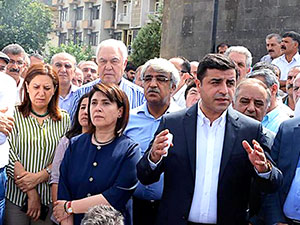 Diyarbakır'da bulunan HDP Eş Genel Başkanı Selahattin Demirtaş, merkez Sur İlçesi'nde bugün sabah uygulamaya konulan sokağa çıkma yasağı nedeniyle aralarında Mir Dengir Mehmet Fırat, Celal Doğan, Leyla Zana ve HDP Grup Başkan Vekili Pervin Buldan'ın da aralarında bulunduğu bir grup milletvekili ile Dağkapı Şeyh Said Meydanı'nda basın açıklaması yaptı.