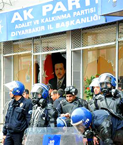 DTP Diyarbakır milletvekilleri Selahattin Demirtaş ve Aysel Tuğluk, Diyarbakır Büyükşehir Belediye Başkanı Osman Baydemir ve bazı DTP'li belediye başkanlarının da aralarında bulunduğu grup, DTP il binasının önünde bir araya geldi.
