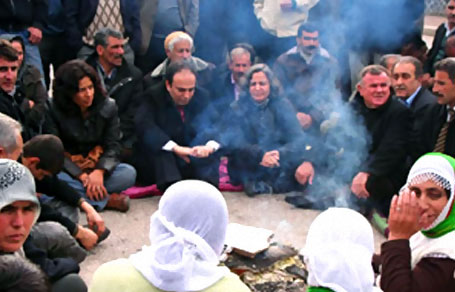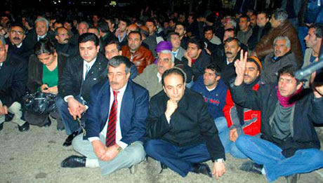 DTP Eşbaşkanı Hatip Dicle ve 7 belediye başkanın da bulunduğu 23 kişinin tutuklanmasının ardından dün sabahtan itibaren bekleyen binlerce kişinin eylemi sürüyor. BDP'li milletvekilleri Selahattin Demirtaş, Emine Ayna, Sevahir Bayındır, Gültan Kışanak, Sebahat Tuncer, Pervin Buldan, Ayla Akat, Hamit Geylani, İbrahim Binici ve siyasi yasaklı milletvekili Aysel Tuğluk, Diyarbakır Büyükşehir Belediye Başkanı Osman Baydemir ve bölge belediye başkanlarının da aralarında bulunduğu binlerce kişi Diyarbakır Adliye Binası önünde oturma eylemi yapıyor.