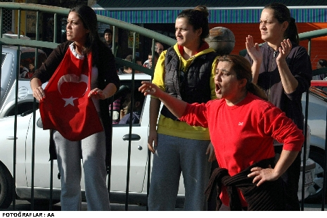 Üçyol Kavşağı'nda toplanan vatandaşlar konvoydakilere tepki göstererek, ''Şehitler Ölmez Vatan Bölünmez'' şeklinde slogan attı ve İstiklal Marşı'nı okudu.