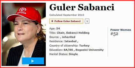 İş çevrelerinin prestijli dergisi Forbes, her yıl yayımladığı "Dünyanın En Güçlü 100 Kadını" listesinde ilk sırada ABD Başkanı Barack Obama'nın eşi Michelle Obama yer alırken Sabancı Holding Yönetim Kurulu Başkanı Güler Sabancı bu yıl 52'nci oldu.