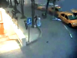 Kameralara yansıyan görüntülerde taksiden inen bir müşteri çantasını almak için taksinin bagajına yöneliyor, bu sırada hemen arkasında meydana gelen kazada kontrolden çıkan 2 otomobil önce taksi müşterisine daha sonra diğer taksilere çarpıyor.