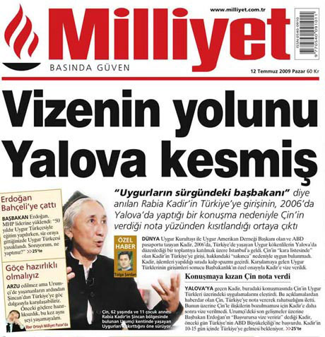 Milliyet, manşetten "Vizenin yolunu Yalova kesmiş" başlığı ile verdiği haberde, Kader'in 2006 yılında Türkiye'ye geldiğini ve Yalova'da yaptığı bir konuşmadan dolayı, Çin'in diplomatik baskıları sonucu veto yediğini iddia etti.