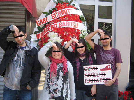Genç Siviller, HSYK Başkanvekili Kadir Özbek'e Mahmut Esat Bozkurt hukuk ödülünü veren İstanbul Barosu'na Almanya'da Nazi dönemi hukukçularından Carl Schmitt'ten çelenk gönderdi.