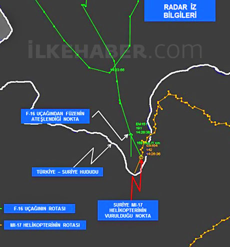 Genelkurmay düşürülen helikopterin radar iz görüntülerini de yayınladı. İşte Suriye helikopterinin radardan görünümü: