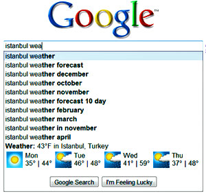 Örneğin Google'ın anasayfasına gidip, "Istanbul Weather" (İstanbul hava durumu) yazdığınızda, gerçek zamanlı arama sonuçlarının en altında 4 günlük hava durumu sonuçları yazıyor. Hava durumu gibi, kesin sonuç veren arama sonuçlarında aynı özelliği ekleyen Google, böylece kullanıcıyı arama bile yaptırmadan sonuca götürmüş oluyor.