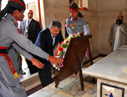 İkbal'in anıt mezarında saygı duruşunda bulunan ve anıta çelenk koyan Gül, burada okunan duayı dinledi.
