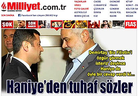 Haniye, “BDP’li ve diğer partili yetkilileri ile ziyaretimiz esnasında bütün konuşmalarımız Filistin, Gazze kuşatması, Filistinli gruplar arasındaki görüşmeler ve Kudüs’ün geleceğini üzerine olmuştur. Türkiye’nin içişlerini ilgilendirecek bir konuda hiçbir görüş sarf etmedim" diye konuştu.