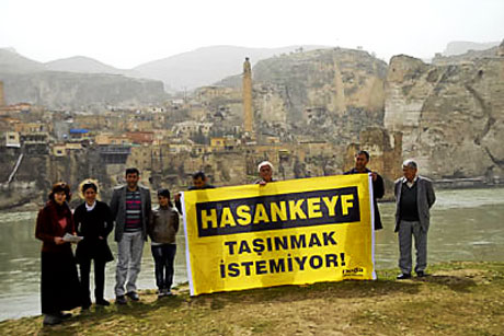 Doğa Derneği üyeleri, yapılacak Ilusu Barajı gölünün altında kalacak Hasankeyf’te Dicle Nehri kıyısında, 14 Mart Dünya Nehirler Günü nedeniyle, ’Söz sırası Hasankeyfliler’de’ sloganıyla eylem yaptı. Dicle kenarında toplanan çevreciler, ’Hasankeyf Taşınmak İstemiyor’ yazılı pankart açtı.