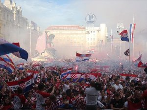 Başkentteki meydanda toplanan Hırvat taraftarlar, ellerinde Hırvatistan bayrakları ve tezahüratlar eşliğinde milli takımlarına destek verdi.