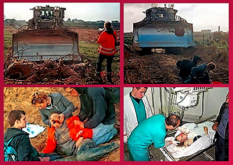 Cindy Corrie: İbranice konuşuyorlardı. Bizim için çok zor bir gündü. Ancak belki de en zor olan şey buldozeri kullanan sürücünün oldukça umarsız ve aldırmaz tavrıydı. Ses tonunda bu çok belli oluyordu. Rachel'ın tam olarak ne zaman buldozerin altında kaldığını bile bilmiyordu. 4 saat süren ifadesi boyunca sesinde hiçbir şekilde pişmanlık ve üzüntü hissetmedim. Herhangi bir beklentim yoktu ama yine de bunu fark etmek çok zor oldu benim için.