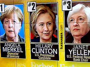 İkinci sırada ABD başkanlık seçimlerinde Demokrat Parti'nin aday adayları arasında yer alan Hillary Clinton, üçüncü sırada da kısaca FED olarak adlandırılan ABD Merkez Bankası Başkanı Janet Yellen bulunuyor.