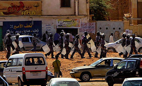 Darfur’da meydana gelen katliamlarla ilgili olarak Devlet Başkanı Beşir’i suçlu bulan Uluslararası Ceza Mahkemesi Başyargıcı Luis Moreno-Ocampo’yu kastederek, "Ocampo doğru söylüyor" sloganları atan göstericiler ayrıca "Zafere kadar devrim" sloganlarıyla yürüdü.