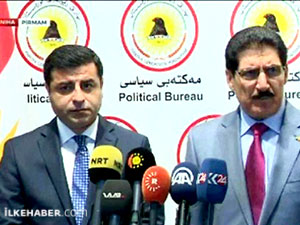 Demirtaş da, “Çok verimli bir toplantı gerçekleştirdik. Kürdistan’da bulunmamızın temel nedeni, hedefi bu tarihi süreçte, Kürdistan’ın geleceğini belirlendiği bu tarihi süreçte, Kürt hareketleri arasında yaşanan, aslında çözülmesi son derece mümkün gerilim noktalarının çözümüne yardımcı olabilmek” ifadelerini kullandı.