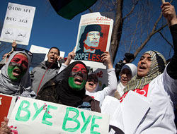 Libya’dan paralı askerlerin yanı sıra savaş uçakları, helikopter ve tanklar kullanılarak, katliam yapıldığı haberleri gelmesi, dünyayı harekete geçirdi. Libya krizini bugüne kadar sessizce izleyen ABD Dışişleri Bakanı Hillary Clinton, “Şimdi bu kabul edilemez vahşeti durdurma zamanı” diye sert bir bir açıklama yaptı. ABD’yi BM Güvenlik Konseyi, Arap Birliği AB, BM Genel Sekreteri Ban Ki-moon ve Kaddafi’nin yakın dostu Berlusconi takip etti. Ban Ki-moon bizzat, Kaddafi’yi arayarak, “Savaş uçaklarını çek, durdur bu katliamı” uyarısında bulundu.