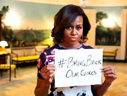 Bugüne kadar özellikle uluslararası ilişkiler konusunda görüş açıklamaktan uzak duran Michelle Obama bir ilki geçekleştirdi ve Nijerya'da kaçırılan kız öğrenciler konusuna değindi. Michelle Obama, kız öğrencilerin kaçırılmasının, dünya genelinde eğitim gören kız çocuklarının karşı karşıya oldukları tehdit ve yıldırma politikasının bir parçası olduğunu söyledi.