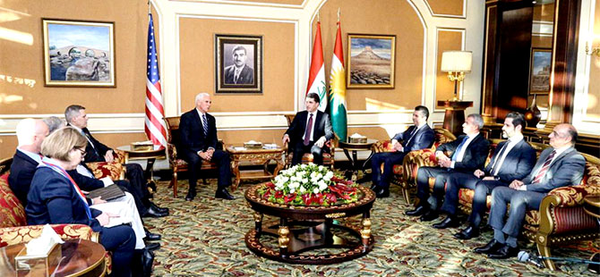 ABD Başkan Yardımcısı Mike Pence Kürdistan Bölgesi başkent Hewler’i ziyaret ederek, Kürdistan Bölgesi Başkanı Neçirvan Barzani ve Kürdistan'ın üst düzey yetkilileriyle bir araya geldi.