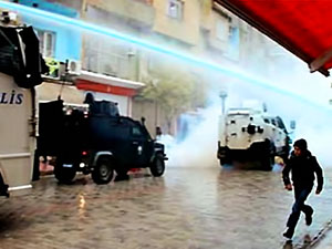 Yürüyüş sırasında yolu kapatan polis tabutu taşıyanlara TOMA'dan su sıkarak biber gazı attı.