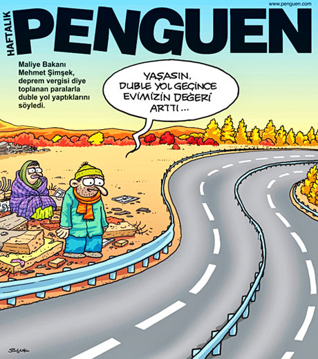 Penguen dergisinin yeni sayısı gazete bayilerindeki yerini aldı. Derginin kapağında Maliye Bakanı Mehmet Şimşek'in deprem vergileri yol oldu sözlerini çizdi...