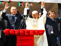 Eski adı Yeşil Meydan olan Şehitler Meydanı’nda bir konuşma yapan Başbakan Erdoğan, Libyalılara “Bir olun. Libya’nın yeraltı zenginlikleri üzerinde hesap yapanlara asla prim vermeyin. Libya Libyalılarındadır, böyle kalmalıdır” diye seslenerek, İngiltere Başbakanı David Cameron ve Fransa Cumhurbaşkanı Nicolas Sarkozy’in önceki günkü ziyaretlerine gönderme yaptı.