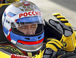 Aracın kokpitine girmeden önce gerekli eğitimleri alan Putin, hız yapmaktan korkmadı. Çita-Habarovski otobanının açılışında kullandığı sarı renkli Lada Kalina aracını anımsatan Putin’in kullandığı sarı renkli araç, yarış severlerin ilgi odağı oldu. Rusya yazılı başlık giyen Putin, Renault yarış elbiseleri ile araca bindi.
