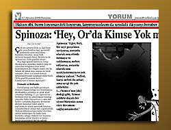 "Spinoza: Hey, Or'da Kimse Yok mu?" başlıklı yazının başında yazarın editöre yazdığı not unutulmuş ve gazete o şekilde baskıya gönderilmişti.