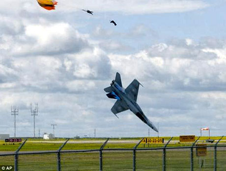 Kanada'da büyük bir facia ucuz atlatıldı. Alberta şehrinde düzenlenecek Hava Şenliği öncesinde prova yapan Kanada Hava Kuvvetleri'ne ait bir CF-18 savaş uçağı, henüz belirlenemeyen bir nedenle düştü. Uçağın pilotu son anda kendini fırlatarak kurtuldu. Kaza anı, kare kare böyle görüntülendi.